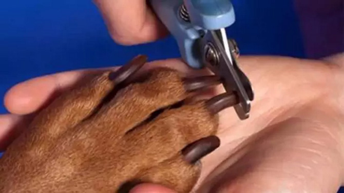 有时,对一些不配合的狗,则需要有人帮助才行,要将狗进行固定,然后再进行修剪。 在下剪时,要特别小心,不能剪得太多太深,以免剪到血根,导致出血。而且狗狗很容易因疼痛而反抗,以后排斥修剪趾甲。