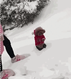 本来想象中,狗子在雪地狂奔,超级快活的模样.... 可现实中: 妈,我jio冷! 妈,我想回家!