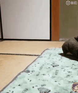 大概是觉得好玩,Kuma总是用前脚推着抹布在地板上走来走去,你们看看这姿势,相当标准了……